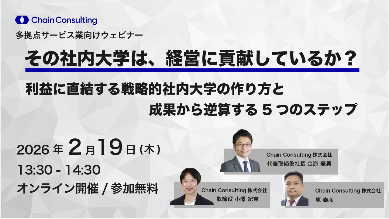 本ウェビナーでは、多拠点ビジネスの成長を阻む「教育の空回り」の解決手法を公開します。経験則や精神論に頼るのではなく、教育工学(ADDIEモデル)に基づいた「科学的な設計」と、従業員満足を利益に変える(サービスプロフィットチェーン)の「実践的アプローチ」を解説。